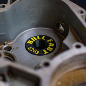 Este kit de rodamientos falsos de la marca BULL FAST incluye todas las piezas necesarias para sustituir temporalmente los rodamientos reales de la caja de cambios de los motores DERBI €2, €3 y €4. Su diseño está pensado para facilitar el montaje y desmontaje durante pruebas y mediciones, sin necesidad de clavar los rodamientos originales.